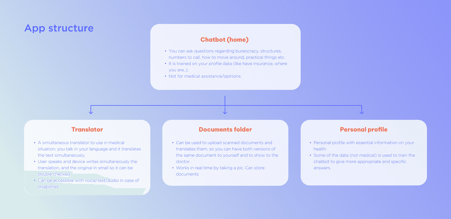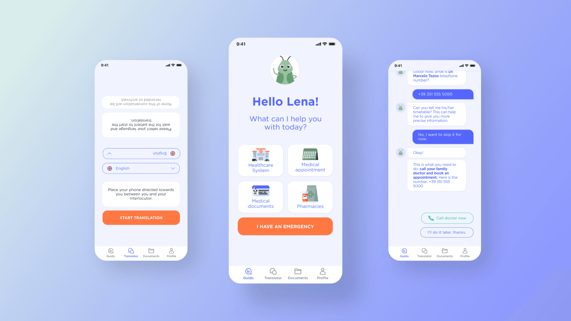 Guido is a smartphone application that offers guidance in the approach to the Italian Healthcare System by non-italian speakers. We decided to focus on each part of the patient’s journey in order to design the perfect tool for people who want to navigate through the SSN. The main features of the app are: a chatbot, who will try to answer every possible questions the patients will have, and an innovative translator which aims to make interaction between patients and doctor easier, especially during health related emergency situations. Here you can find the full technical report, the full chatbot structure and a comprehensive project presentation.
