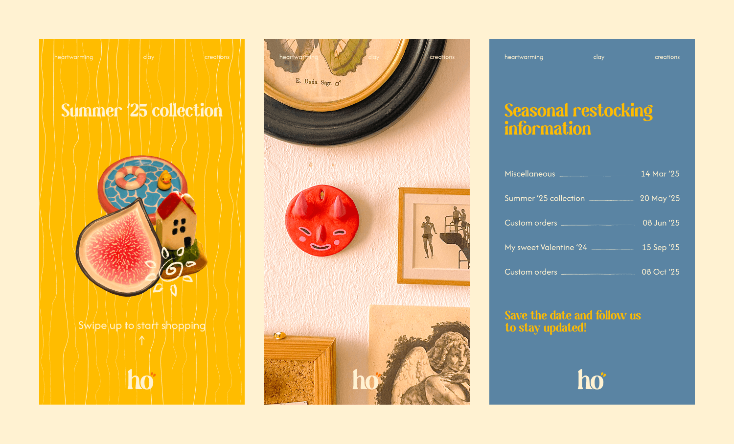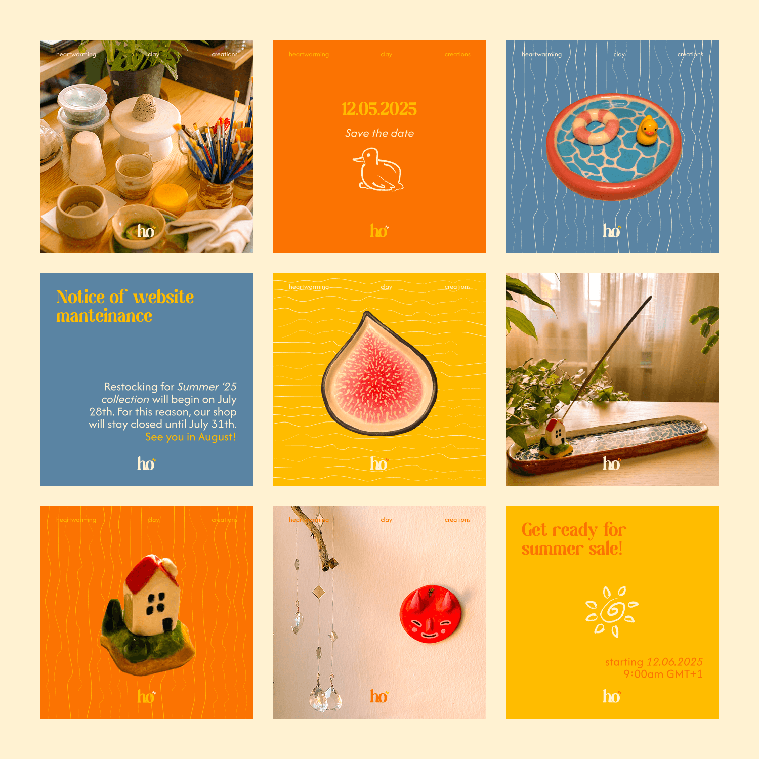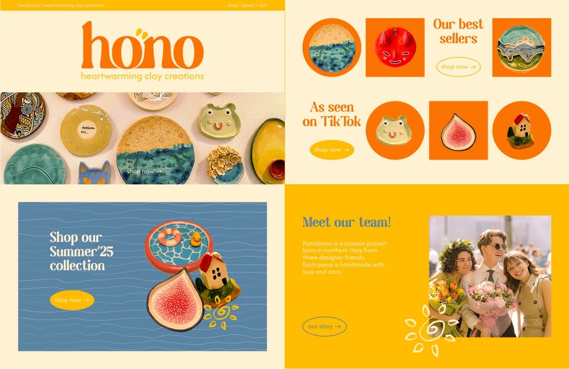 Honobono is a local handmade clay shop, selling trinkets and furniture via an online shop. The brand name comes from a Japanese onomatopoeic sound that means something along the lines heartwarming, fuzzy, cozy. This is what honobono’s products and brand identity are all about: a feel of warmth and coziness, that can be seen in familiar colors, shapes and language.